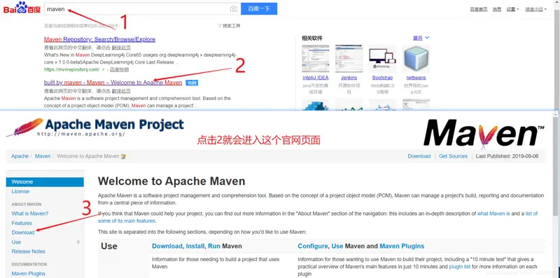 方法二:直接百度maven (推荐!!!不要问我为什么,我就喜欢酱紫,简单粗暴,不搞那些花里胡哨的)