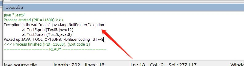 //当一个变量为null(没有赋值)时我们调用了改变量的属性和方法,