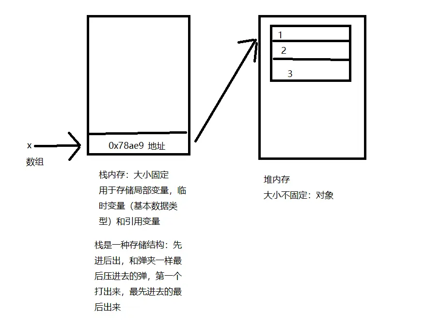 先来说一下栈内存和堆内存 数组是引用类型,会存在堆内存中,