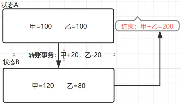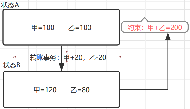 Consistency一致性数据从状态A,通过事务操作,转为状态B,要求数据在状态A满足的约束对于状态B的数据一样试用