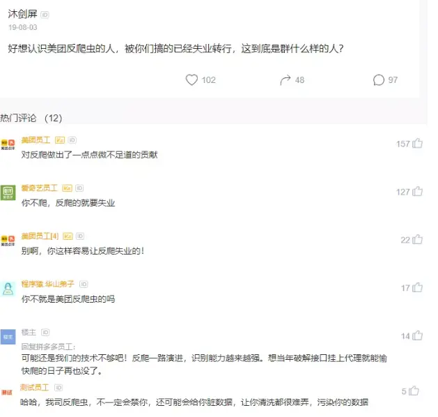 爬虫工程师和反爬虫工程师是一对相爱相杀的小伙伴,经常因为对方要加班写代码,甚至丢掉工作。比如下面这张图,大家用心感受一下: