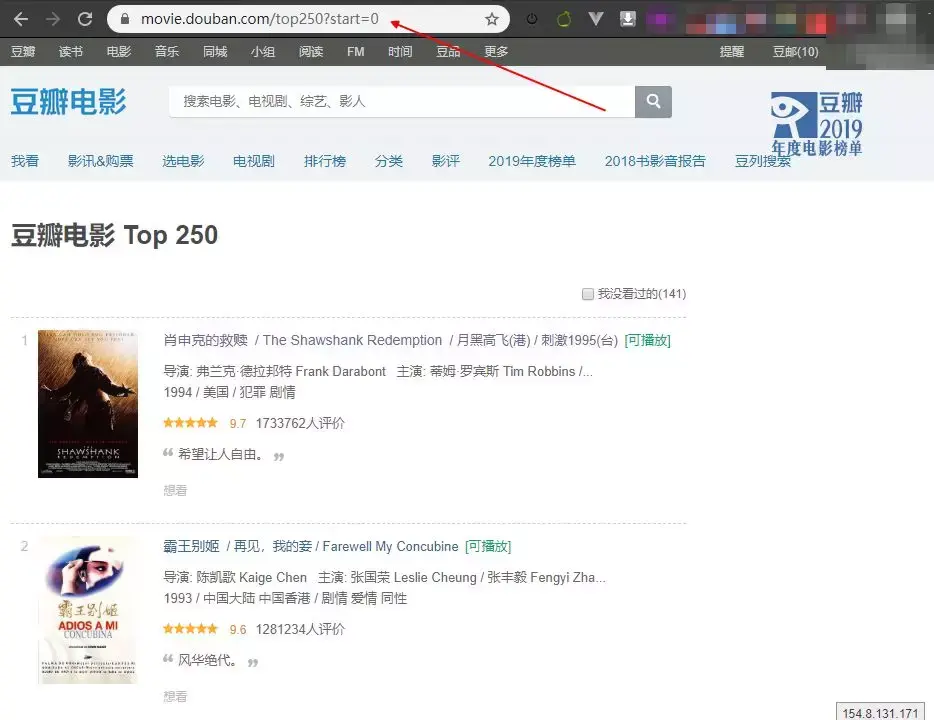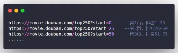 爬虫的第一步,分析url,经过分析,豆瓣电影Top250页面的url有一定的规则: