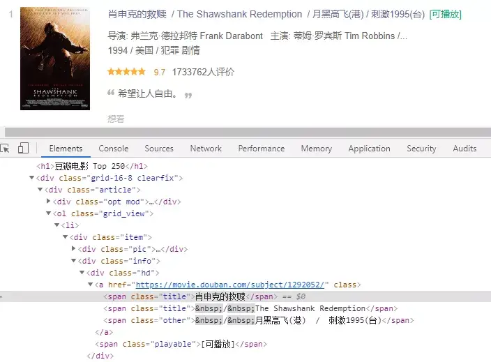 本案例的需求是:抓取豆瓣电影Top250电影信息。