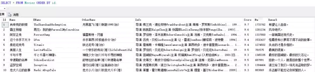 sql = "insert into Movies(Name,EName,OtherName,Info,Score,Number,Remark) values('"+name + \