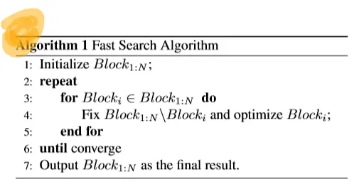 1、感觉这篇论文里的3.2 Fast Search部分写的很有意思,尤其是Search Algorithm部分。明明就是轮流优化,被作者写成了类似分治的一种方法,一下子格局就提高了不少orz。待抄。