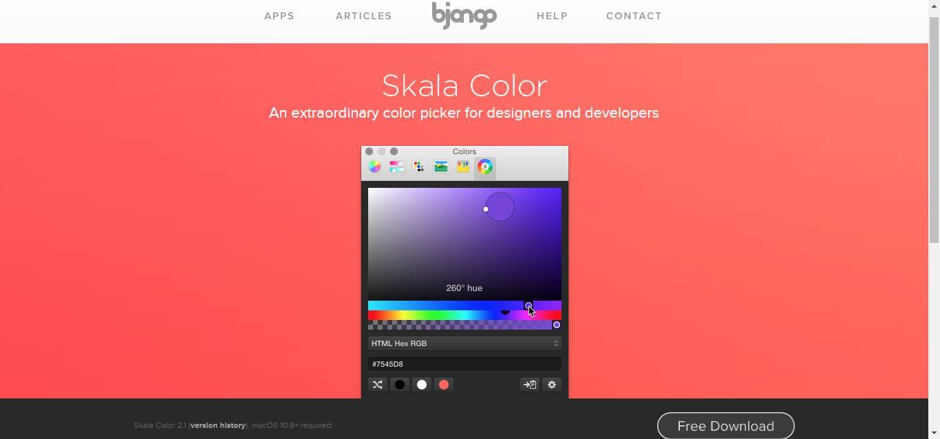 Skala Color是一款为设计师和开发者而生的优质取色工具。这款取色器小巧简洁但功能丰富,适用于OS X系统,支持大量的格式(如十六进制、CSS的RGBA模式或HSL模式、UIColor亦或是NSColor等等),在web、iOS、Android、或OS X开发上都能胜任。