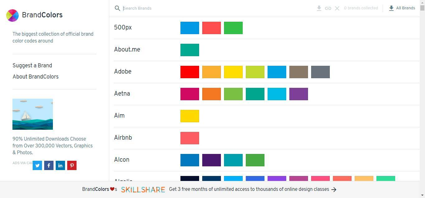 Brand Colors,即世界知名品牌颜色收集网,收录了世界最知名的品牌、企业公司、知名网站的颜色的色码,你可以快速下载获取颜色文件,文件支持ASE、SCSS、LESS和CSS格式。