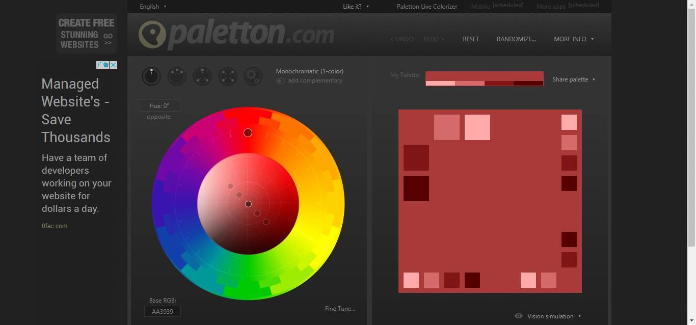 Paletton是一个成立于2002年的颜色配色工具,帮助平面设计师和网页设计师选择理想的配色方案,打开网站即可选择一种颜色,然后系统自动生成配套的色系供设计师使用。