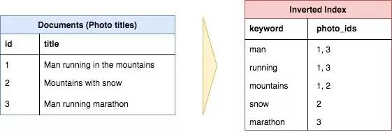 例如上图,对标题进行分词,然后以每个词作为关键字,指出谁的标题中含有这个关键字,这就是倒排索引。