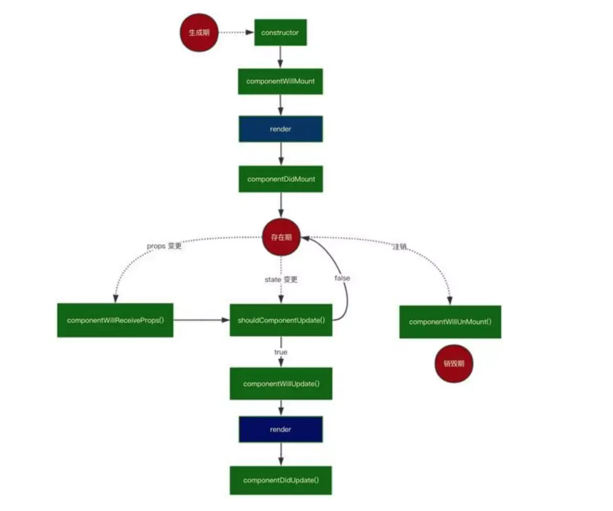 componentWillMount:组件初始化时只调用,以后组件更新不调用,整个生命周期只调用一次,此时可以修改state。下一个版本可能会被废弃。