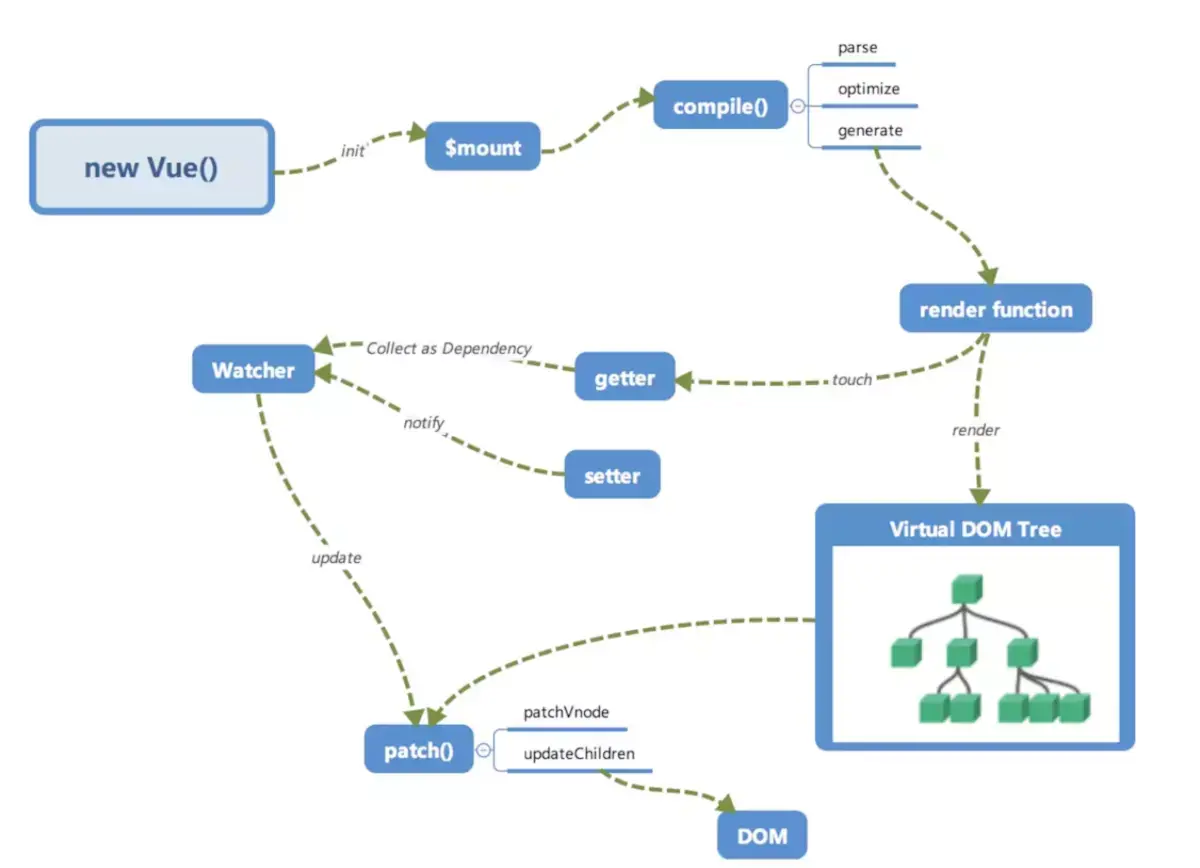 而vue的思想是响应式的,也就是基于是数据可变的,通过对每一个属性建立Watcher来监听,当属性变化的时候,响应式的更新对应的虚拟dom。