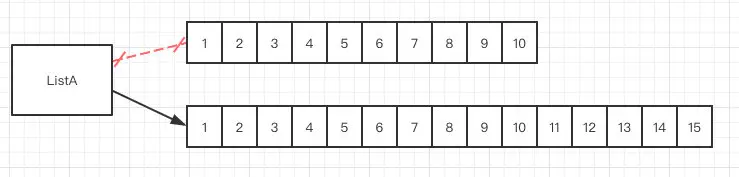 然后把原数组的数据,原封不动的复制到新数组中,这个时候再把指向原数的地址换到新数组,ArrayList就这样完成了一次改头换面。