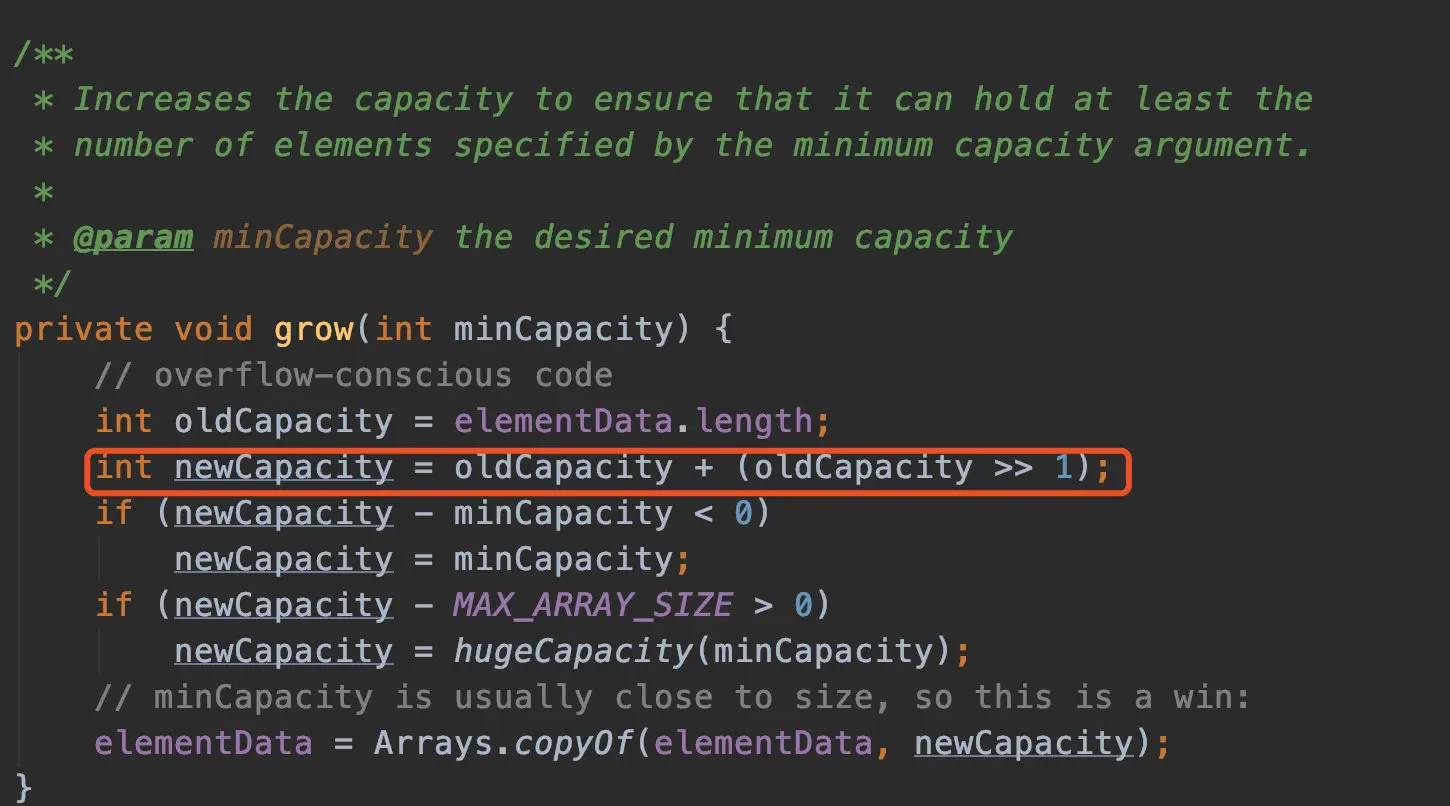 就比如我们现在有一个长度为10的数组,现在我们要新增一个元素,发现已经满了,那ArrayList会怎么做呢?