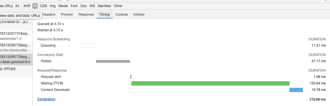 神奇的是, taobao竟然在一次请求中拉下了整个PDP页的完整数据, 而且服务端处理耗时不到125ms