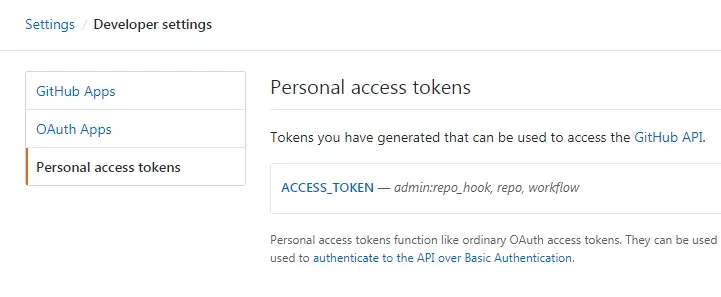 Settings/Developer settings创建密钥,勾上 admin:repo_hook,repo,workflow