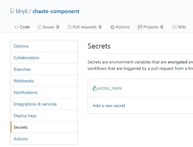 Settings/Secrets里面,命名 ACCESS_TOKEN