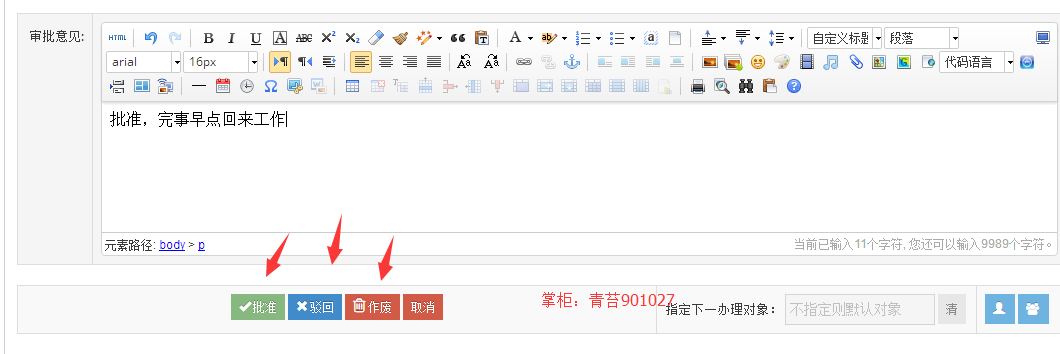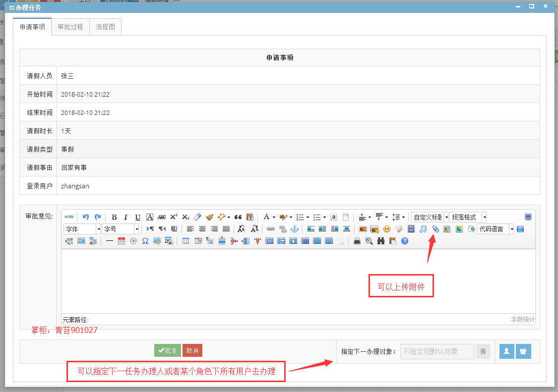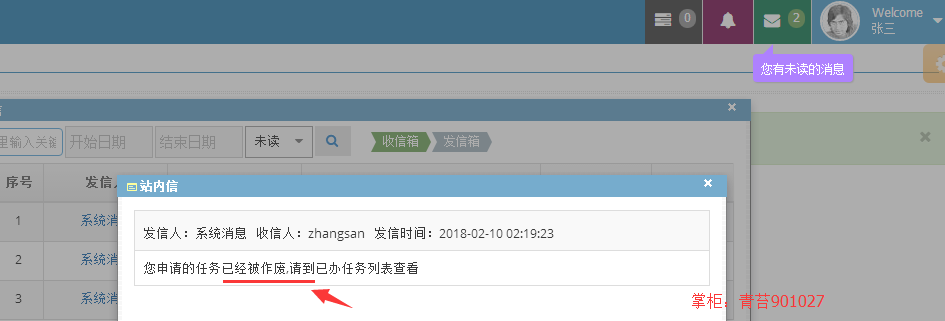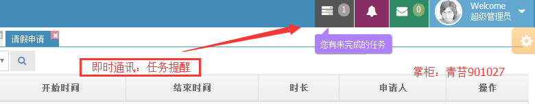 注:当办理完当前任务时,下一任务待办人会即时通讯收到新任务消息提醒,当作废和完结任务时,