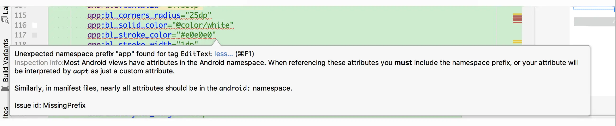 经过查找,发现了两种解决方式,一种是在使用到这个属性的地方,同步添加 tools:ignore="MissingPrefix"。