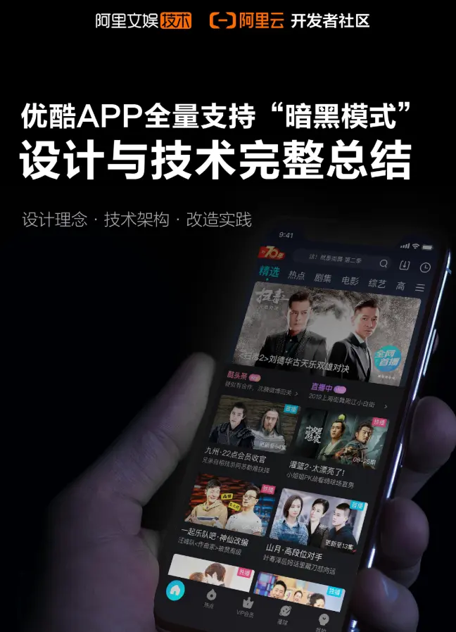《优酷 APP 全量支持“暗黑模式” ——设计与技术完整总结》现已发布!设计理念+技术架构+改造实践,全方位解读暗黑模式的技术实现。