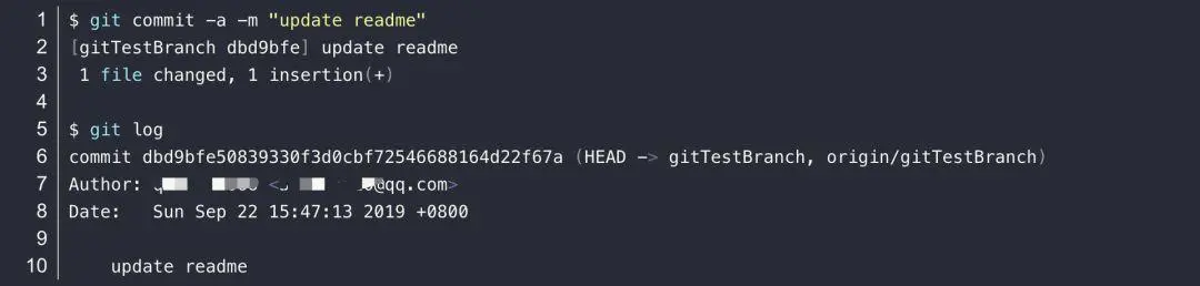 2.1) 先在readme.txt文件中加入一行branch gitTestBranch update2,然后提交到远程分支中: