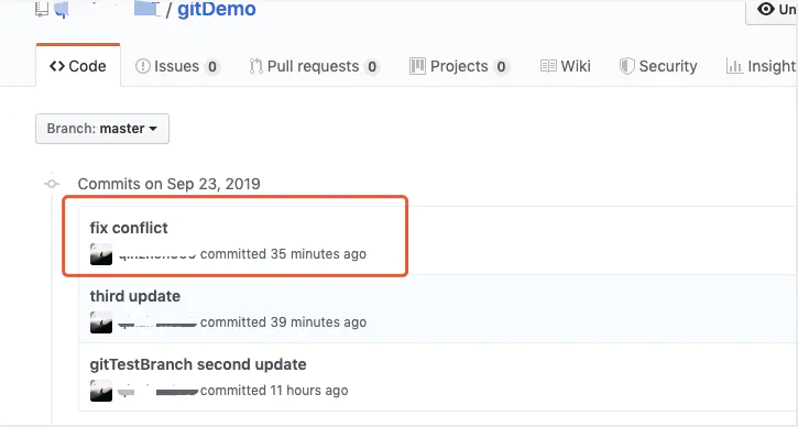 2.3)master分支上fetch拿取远程gitTestBranch分支,修改冲突,合并提交
