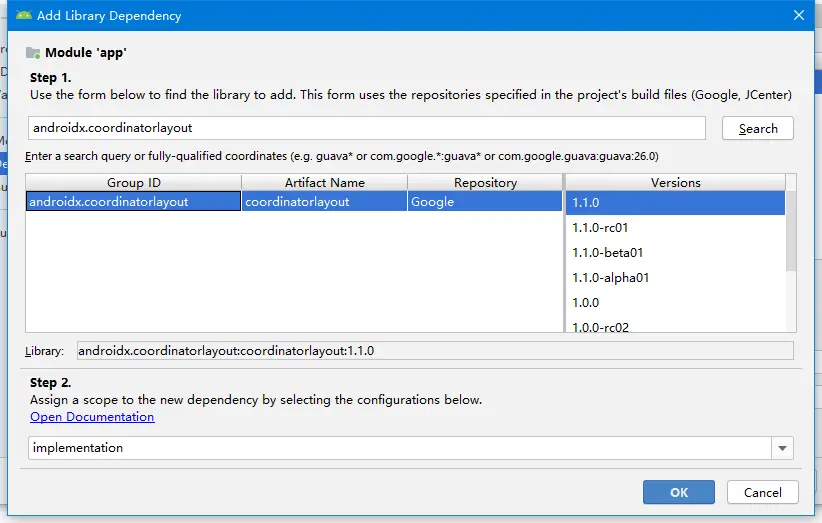 implementation 'androidx.coordinatorlayout:coordinatorlayout:1.1.0'