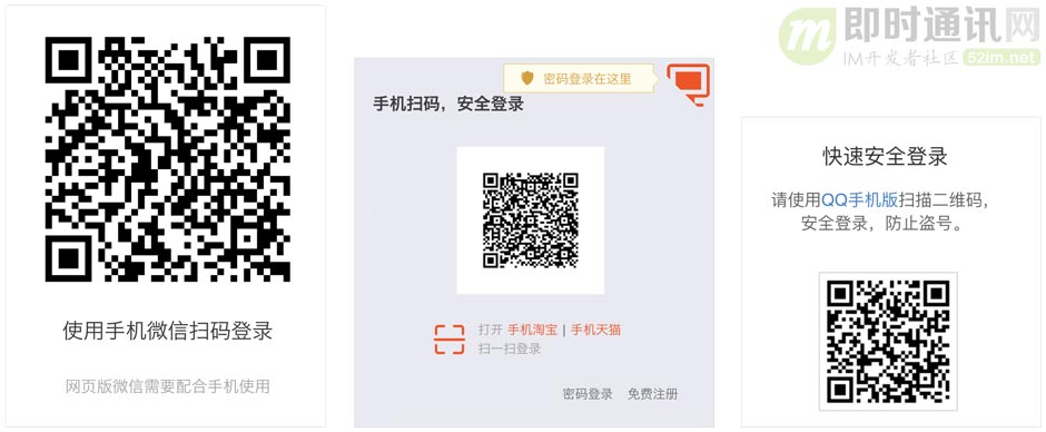 扫码登录这个功能,现在已经不只出现有IM应用里,各种带有移动端的线上网站也都有了这个功能,所以本文中介绍的技术原理并不局限于只用于实现IM应用中的扫码登录。