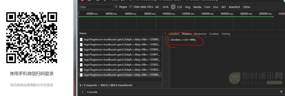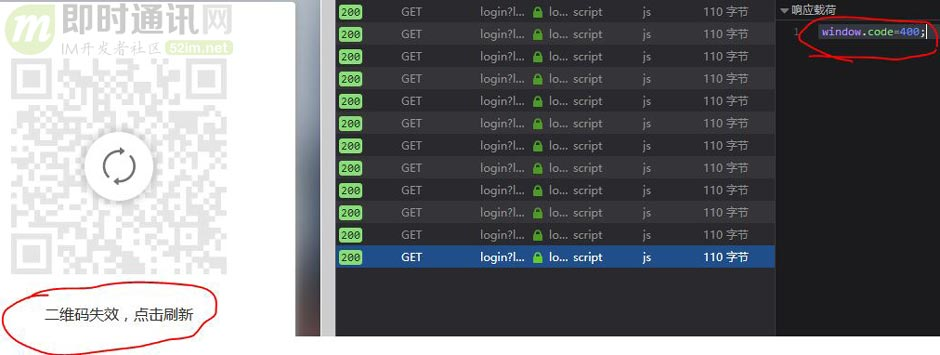 微信网页端扫码登录时,轮询的数据返回采用的是JSONP的形式,这是为了解决跨域问题。如对JSONP不了解的,可以阅读《详解Web端通信方式的演进:从Ajax、JSONP 到 SSE、Websocket》一文的“三、JSONP”这一节。