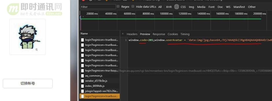 关键的就是lgToken,是网页的唯一ID,当打开了二维码登录的时候,网页在轮询(应该是长轮询long polling)调用接口去请求服务器。