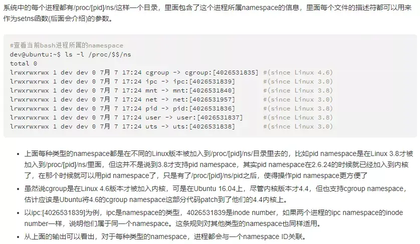 Linux查看进程的命名空间
