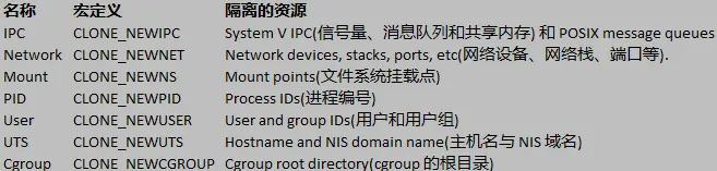 目前,Linux内核里面实现了7种不同类型的namespace。