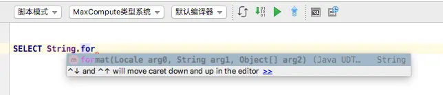 - MaxCompute Studio 智能提示能够大大提升编码效率。