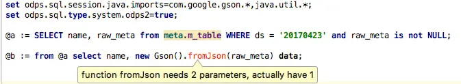 @b := select new com.google.gson.Gson().fromJson(str, java.util.List.class) l from @a; -- 反序列化json