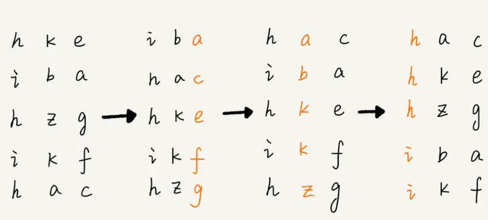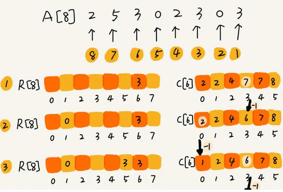 借用稳定性排序算法,可以实现先对基数排序,然后对高位排序。整个排序下来,才会得出期望值。