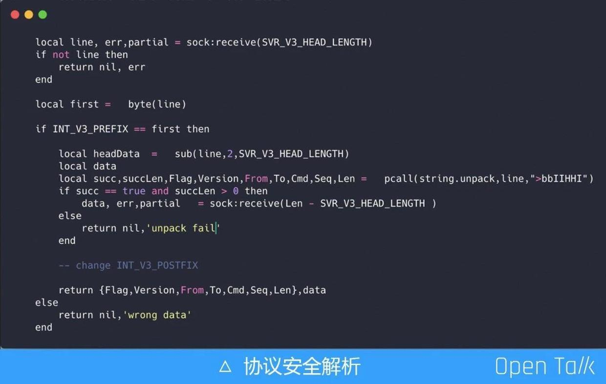 而做协议解析遇到一个问题:OpenResty 使用的是云风写的 PBC 解析器,解析写起来非常麻烦,必须要知道里层的结构。假设结构有三层,你得写三层判断代码,一层一层地把它抛出来。但后来发现 Apache APISIX 是基于 lua-protobuf,所以我们也改成了用 lua-protobuf 库,它可以直接把一个 PB 对象直接转成了 JSON,非常方便。