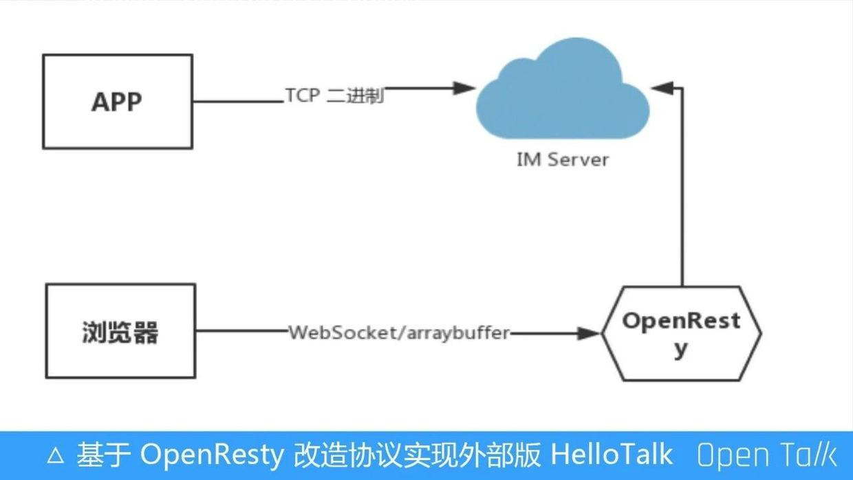我们当时做完 C++ 的 IM 通讯服务后,看到主流的 IM App 如 WhatsApp、微信都有 Web IM,我们很快的基于 OpenResty 对他们的协议进行兼容和改造,大概两周时间,我们就从服务端快速实现了一个 WebIM 版本的 HelloTalk。