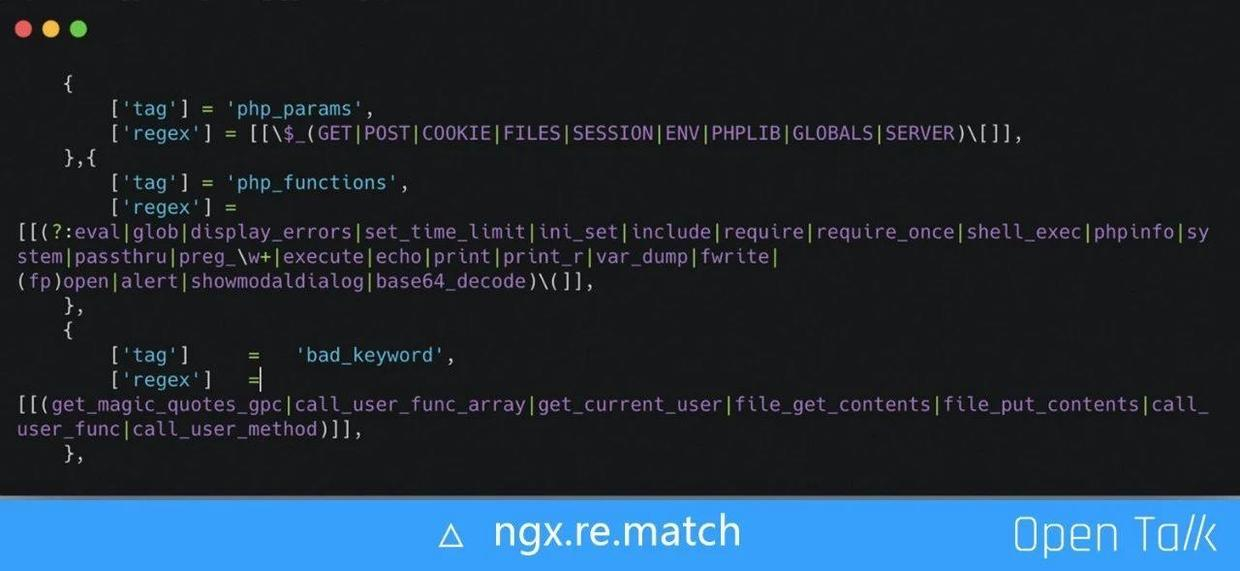 做过 PHP 开发应该知道,所有的入侵其实是各种注入 PHP 的函数名字、关键字。但当我把所有的 PHP 的函数名全放在 WAF 后,我再也没发现过被攻击,但在日志里发现很多,这说明全部被拦截了,到不了 PHP 那边。