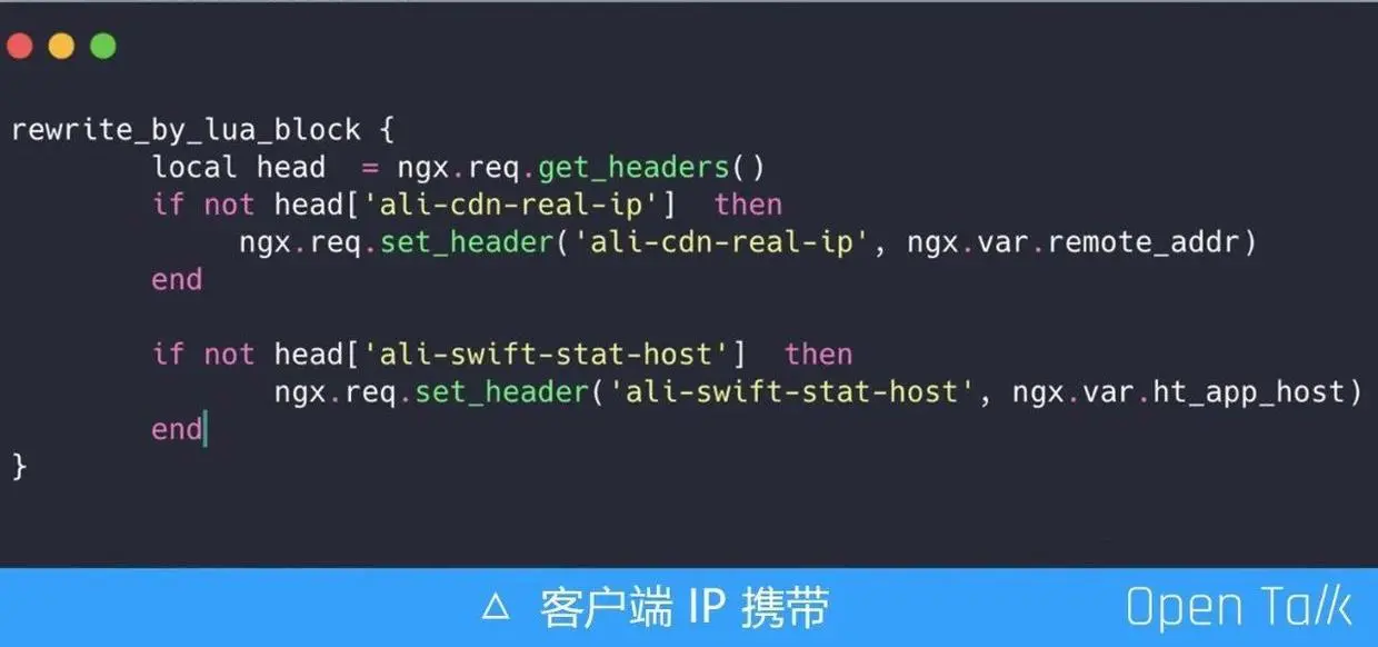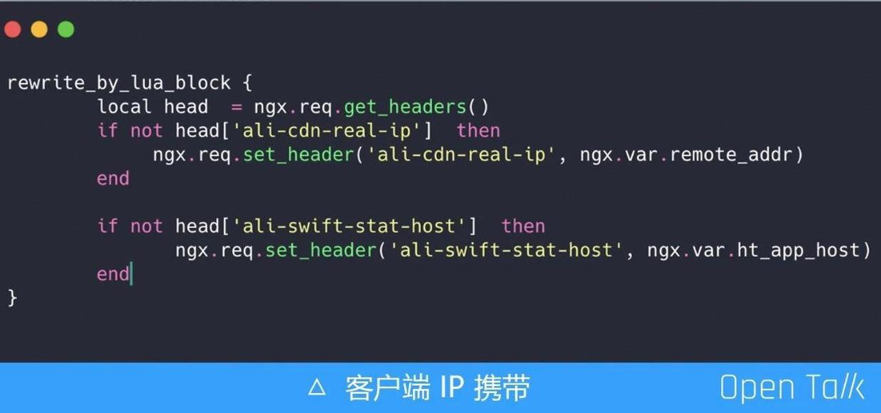 此外,监控质量也成了问题,我们需要知道哪条线路行、哪条线路不行,虽然有切换机制,但我们要知道它真实的通讯路线。事实上我们在每个流量层代理时都会把真实 IP 带着跑,如果采用阿里云,那阿里云会帮我们填到一个头里面去,不断地把客户端的真实 IP 带给下一个节点。