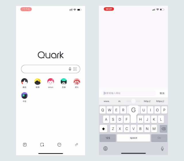 夸克浏览器是专注下半部分做的最好的一个,夸克并没有像 Safari、QQ浏览器那样把搜索框放在顶部,而是将整合后的搜索栏放在了用户更容易操作的屏幕下半部分。