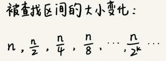 所以,经过了k次区间缩小操作,时间复杂度就是O(k)。通过n/2 k =1,我们可以求得k=log 2 n,所以时间复杂度就是O(logn)