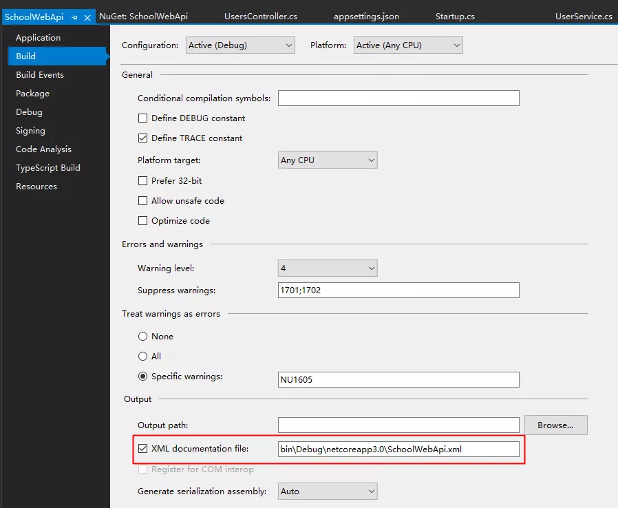 Swagger所必须的,只是为了获取目录文件所需。 编译时生成xml文档