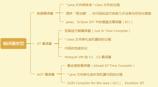 除了这两种编译器,还有一种直接把 *.java 文件编译成本地机器码的编译器,我们称之AOT 编译器。