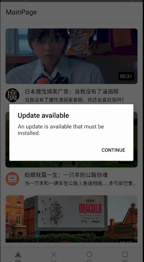 一般常见的应用内更新时机分为两种,一种是打开App就检查更新,一种是放在设置界面让用户主动检查更新并安装