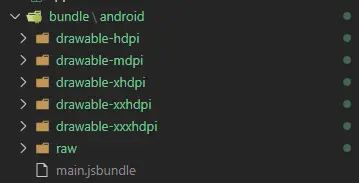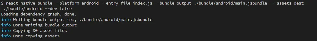 $ react-native bundle --platform android --entry-file index.js --bundle-output ./bundle/android/main.jsbundle --assets-dest ./bundle/android --dev false