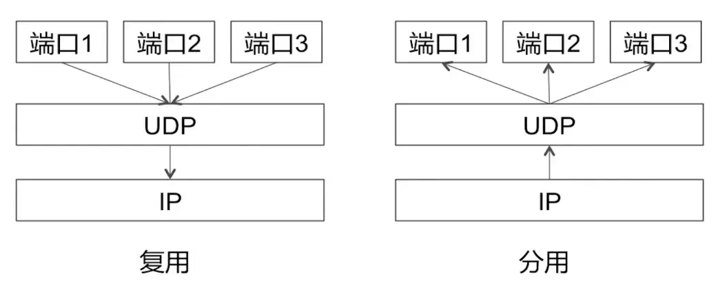 端口号:可以使目的主机将应用数据交给运行在目的端系统中端相应进程,执行分用功能。