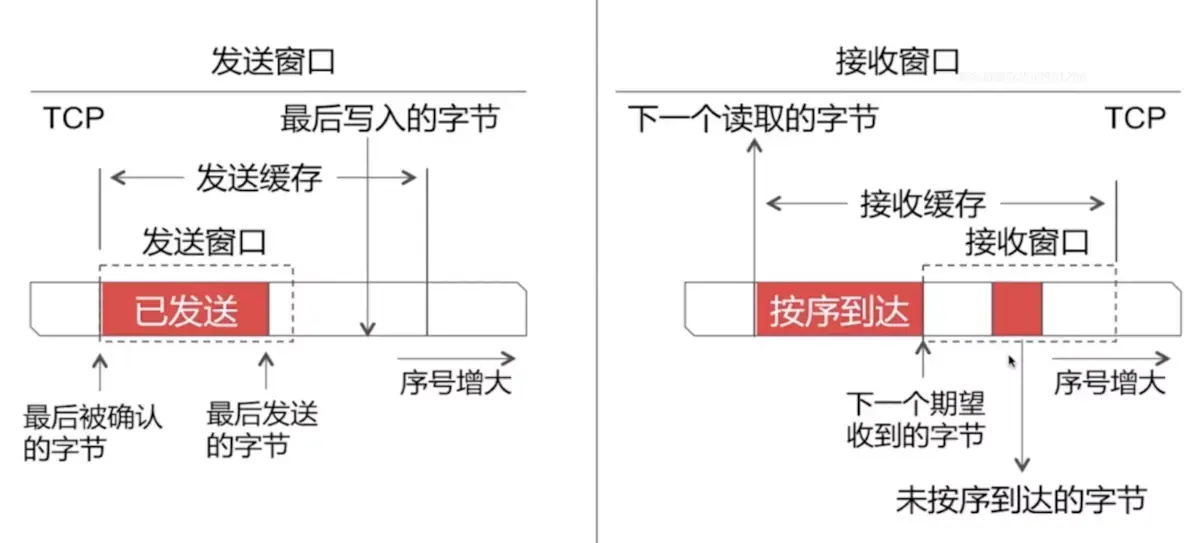 接收窗口只有在前面所有的报文段都确认的情况下才会移动左边界。当在前面还有字节未接收但收到后面字节的情况下,会先接收下来,接收窗口不会移动,并不对后续字节发送ACK确认报文,以此确保发送端会对这些数据重传。