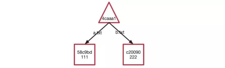 - Git会将整个数据库储存在.git/目录下,如果你此时去查看.git/objects目录,你会发现仓库里面多了两个object。可以发现这个object是一个blob类型的节点,他的内容是哈希值代表着111,也就是说这个object储存着a.txt文件的内容。这里我们遇到第一种Gitobject,blob类型,它只储存的是一个文件的内容,不包括文件名等其他信息。然后将这些信息经过SHA1哈希算法得到对应的哈希值,作为这个object在Git仓库中的唯一身份证。我们此时的Git仓库是这样子的:
