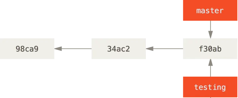 它只是为你创建了一个可以移动的新的指针。 比如,创建一个 testing 分支, 你需要使用 git branch 命令:$ git branch testing