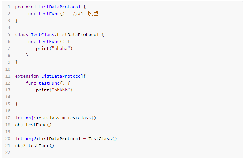 请问如果标记为#1的协议中函数定义testFunc,存在和被注释掉时,输出结果是否相同?