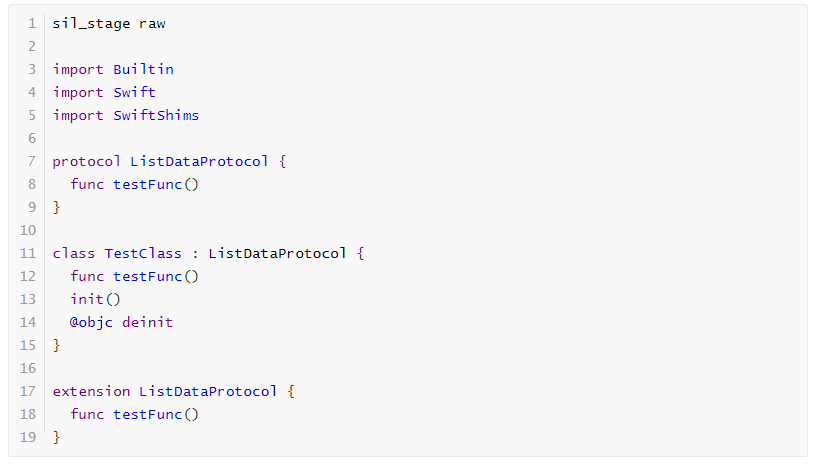 如果你对比过protocol ListDataProtocol 中是否注释掉func testFunc()这行生成的SIL有什么不同?就会发现,很明显的一点是sil_witness_table ListDataProtocol中是否有ListDataProtocol.testFunc会生成。